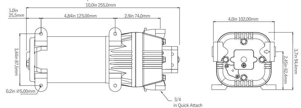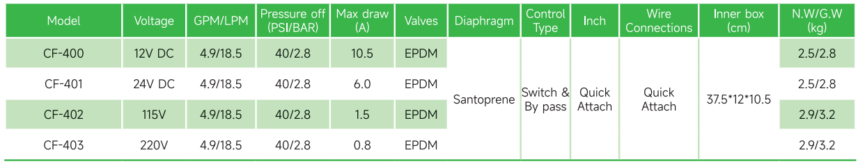 4 챔버 양정식 다이어프램 펌프, 자체 흡입, 건식 작동 가능 |