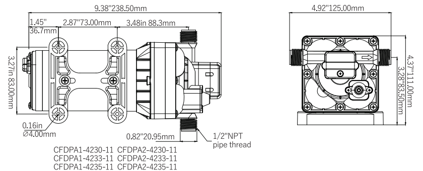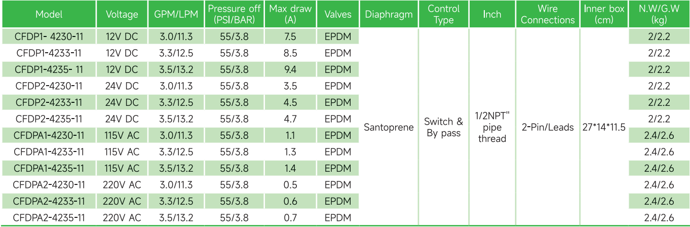 4 챔버 양정식 다이어프램 펌프, 자체 흡입, 건식 작동 가능