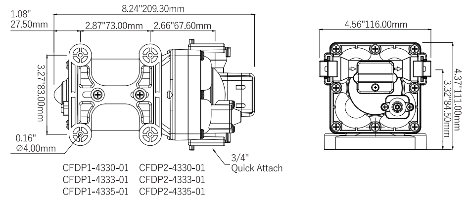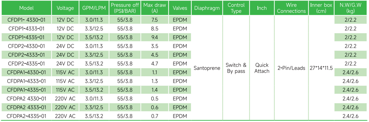 4 챔버 양정식 다이어프램 펌프, 자체 흡입, 건식 작동 가능 |