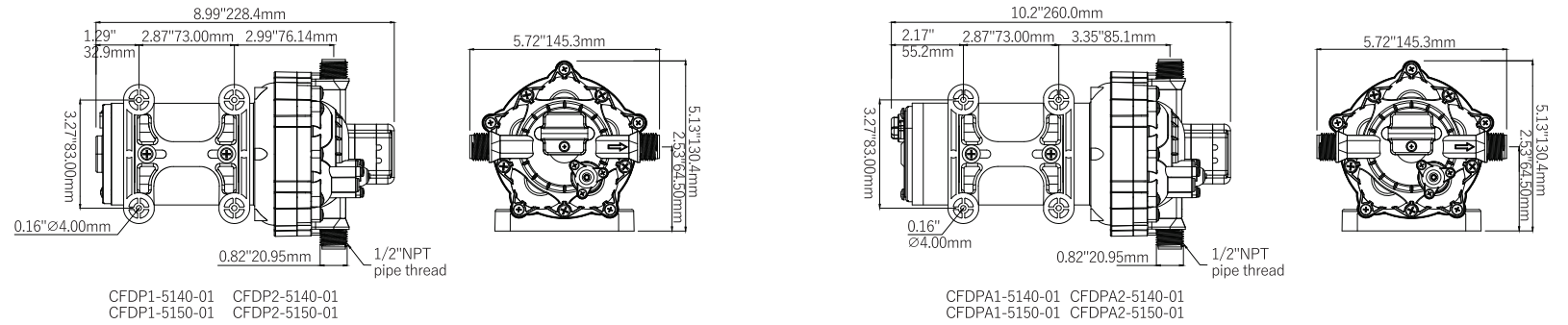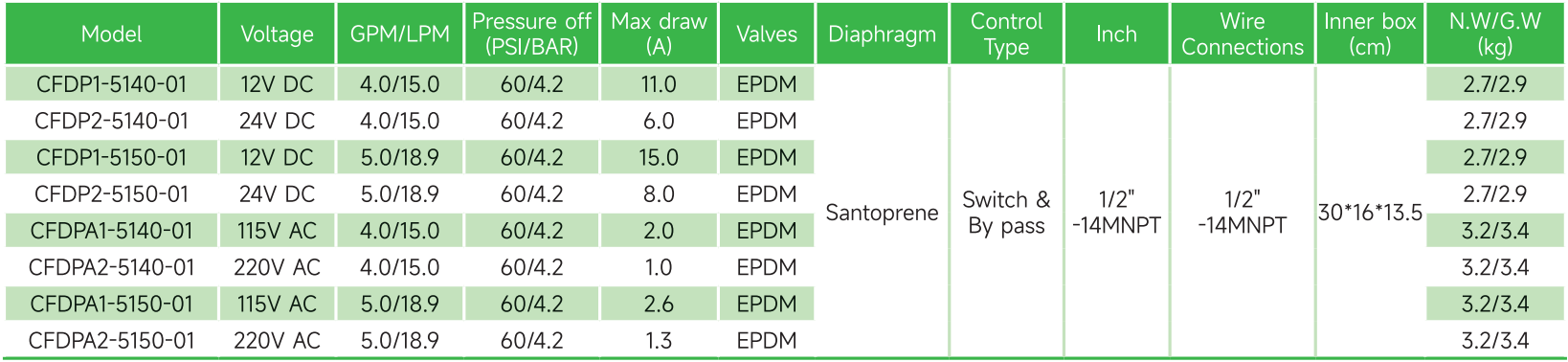 4 챔버 양정식 다이어프램 펌프, 자체 흡입, 건식 작동 가능 |