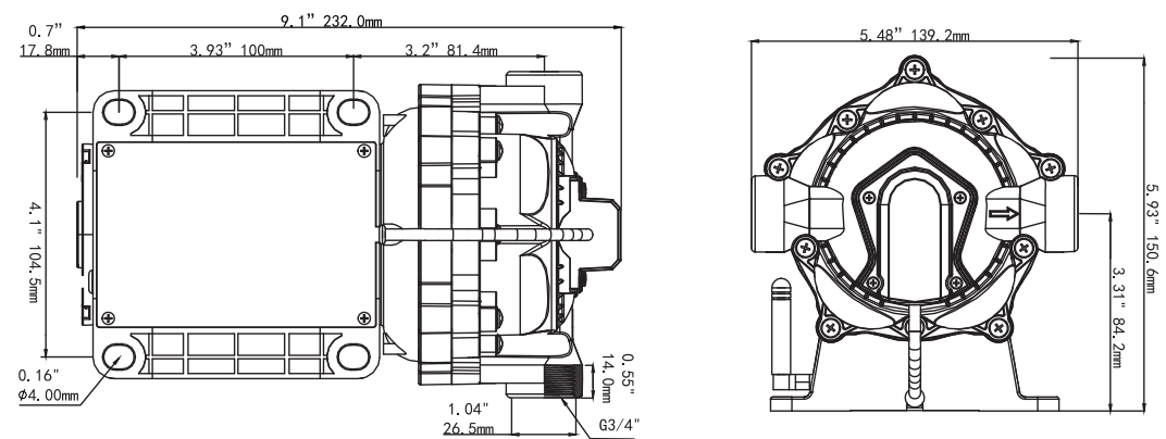 4 챔버 양정식 다이어프램 펌프, 자체 흡입, 건식 작동 가능 |